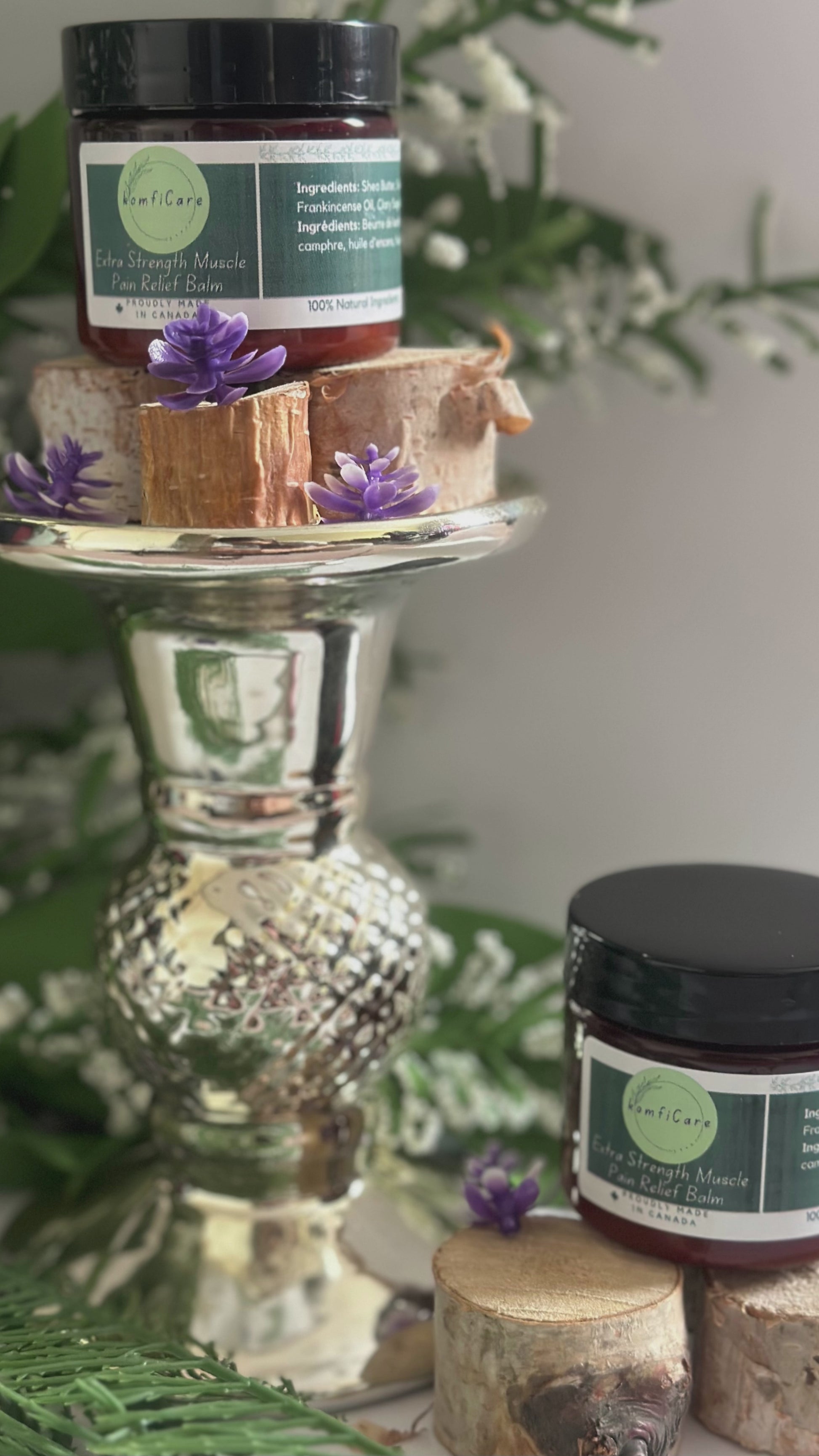 Extra Strength Pain Relief Balm is an extra-strength, fast-acting cream. Users report that muscle knots are relieved quickly after using this balm which has unique formulations of pain-relieving, organic, and aromatic essential oils. The solid texture in the container transforms into a smooth and soft fragrant rub that melts into a pleasant colorless cream moments after it’s applied.