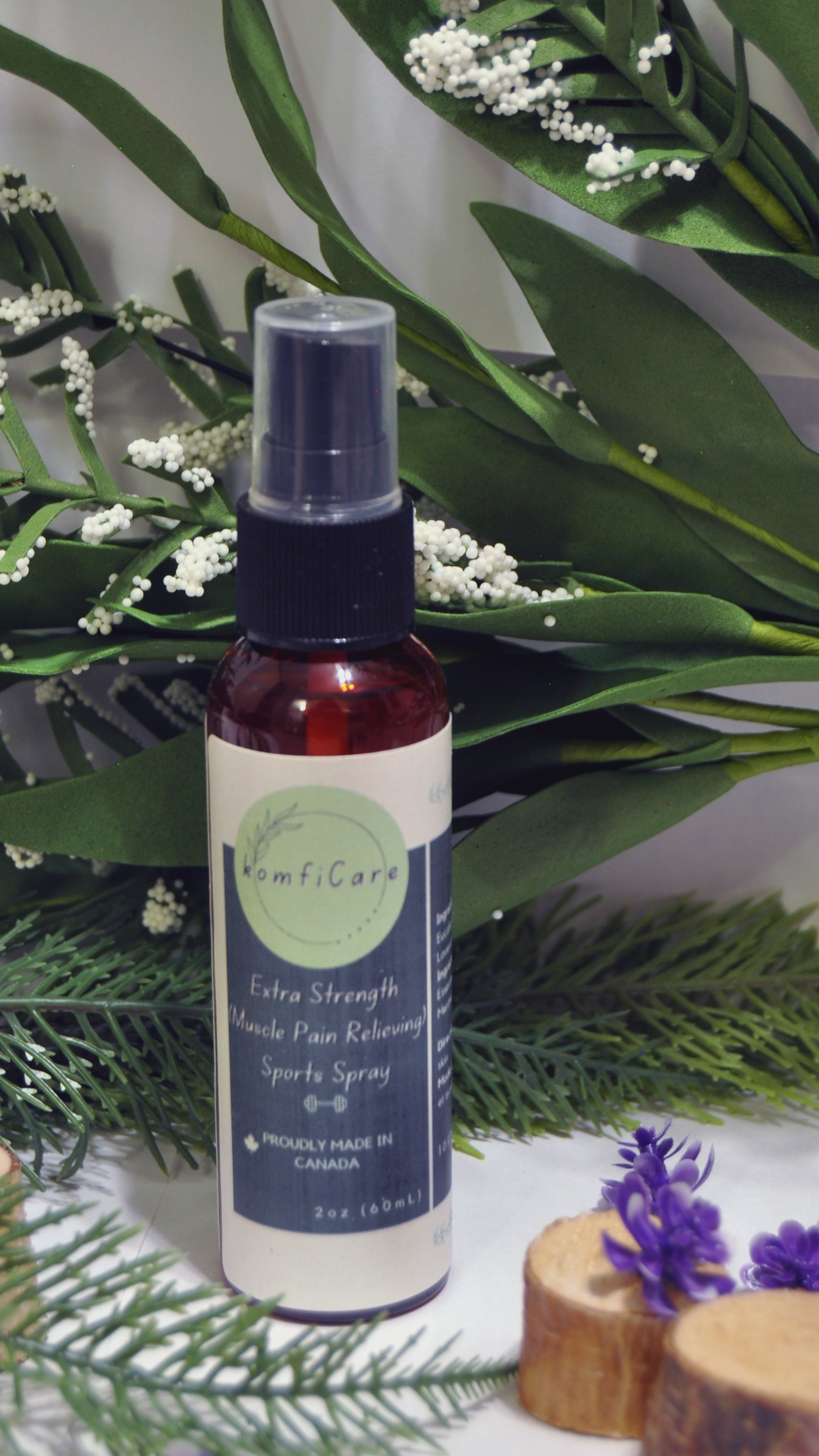 The Extra Strength (Muscle Pain Relieving) Sports Spray is formulated with a higher concentration of essential oils to relieve pain caused by an active lifestyle. Expect muscle pain caused by your active lifestyle to be relieved quicker after using this spray with enhanced formulations of pain-relieving, organic, and aromatic essential oils. The spray has been used effectively for Muscle, Joint, and Body Pain for ages 18 and up.